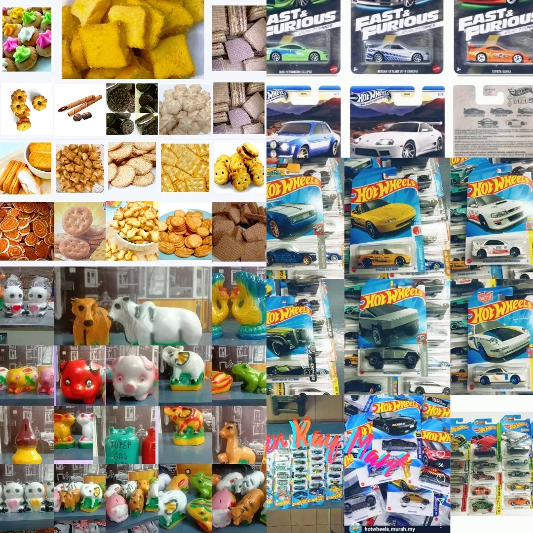 Explore an exquisite selection of biscuits, cookies & snacks, coin banks, hot wheels & diecast scale models - each piece telling a story from a cherished past, present and what future holds!!!